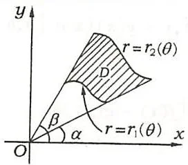 (1)设 \(r_1(\theta), r_2(\theta)\) 在 \([\alpha, \beta]\) 连续,\(r_1(\theta) \leqslant r_2(\theta) (\forall \theta \in [\alpha, \beta])\),则在极坐标系中由曲线 \(r = r_1(\theta), r = r_2(\theta)\) 及射线 \(\theta = \alpha, \theta = \beta (\alpha < \beta)\) 所围成的区域 \(D\) 的面积(如图3.6)为