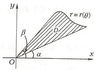 \[S = \frac{1}{2} \int_{\alpha}^{\beta} \left[ r_{2}^{2}(\theta) - r_{1}^{2}(\theta) \right] d\theta .\]特别地,当 \(r_2(\theta) = r(\theta),r_1(\theta) = 0\) 时(如图3.7),有 \(S = \frac{1}{2}\int_{\alpha}^{\beta}r^{2}(\theta)\mathrm{d}\theta\)。