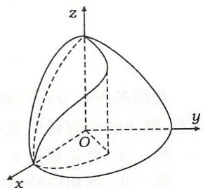 【分析与解法一】由对称性只需考虑第一卦限部分。将柱面方程表成 \(y\) 为 \(x\) 的函数是方便的:\(y = \sqrt{ax - x^2}\)。于是 \(S = 4\iint_{D} \sqrt{1 + y'_x^2 + y'_z^2} \,\mathrm{d}z\,\mathrm{d}x\),\(D\) 是这部分柱面在 \(Ozx\) 平面的投影区域,求出 \(D\) 的关键是求柱面与球面的交线在 \(Ozx\) 平面的投影曲线。见图9.37。